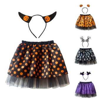 Venta al por mayor calavera calabaza murciélago punto niños niñas disfraz tutú falda